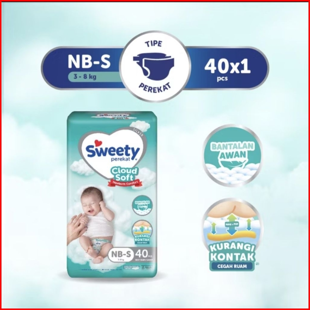 Sweety Cloud Soft Popok Perekat Nb-s 40 Beli 3 Lebih Hemat