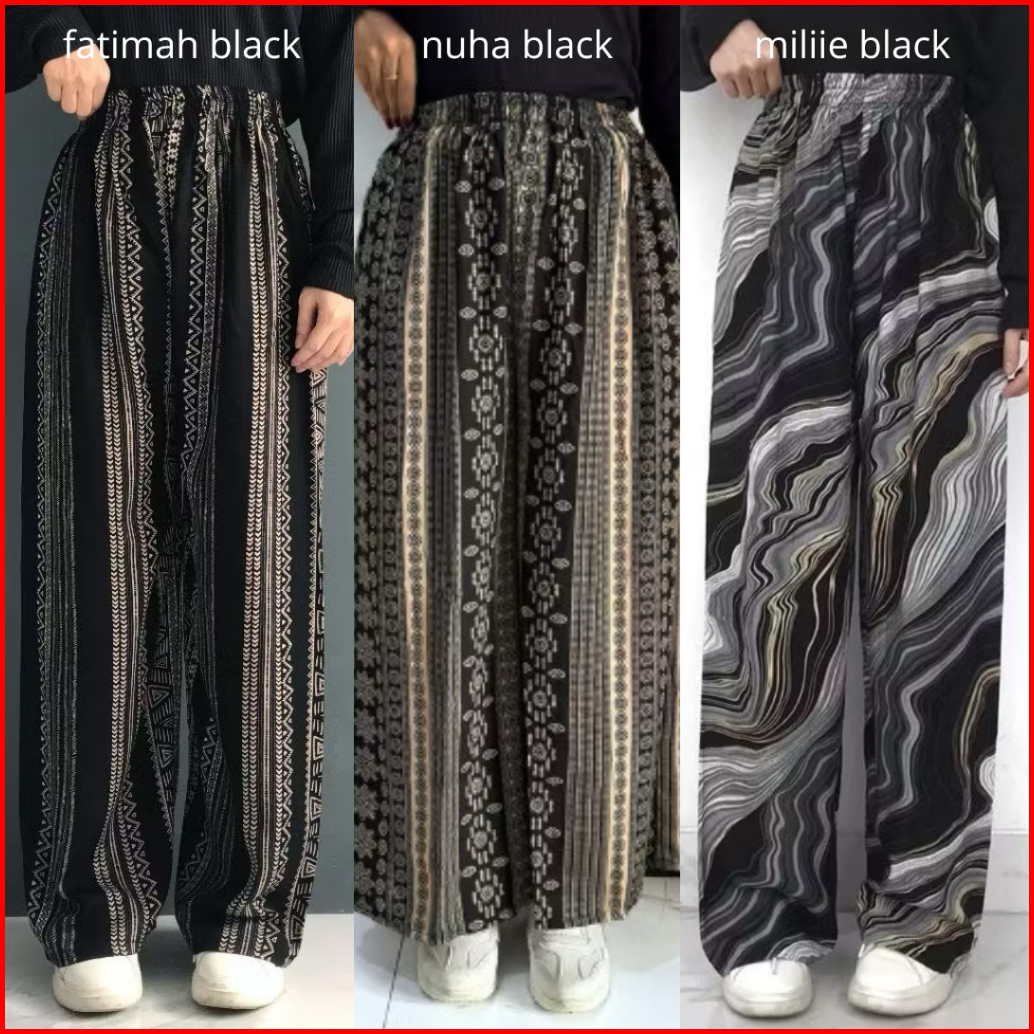Fzrck Paket Murah Isi 3 Pcs Celana Kulot Hommy Kallyoutfit Wanita Rayon Viscose Premium Size M L Xl Xxl Motif Terbaru Re