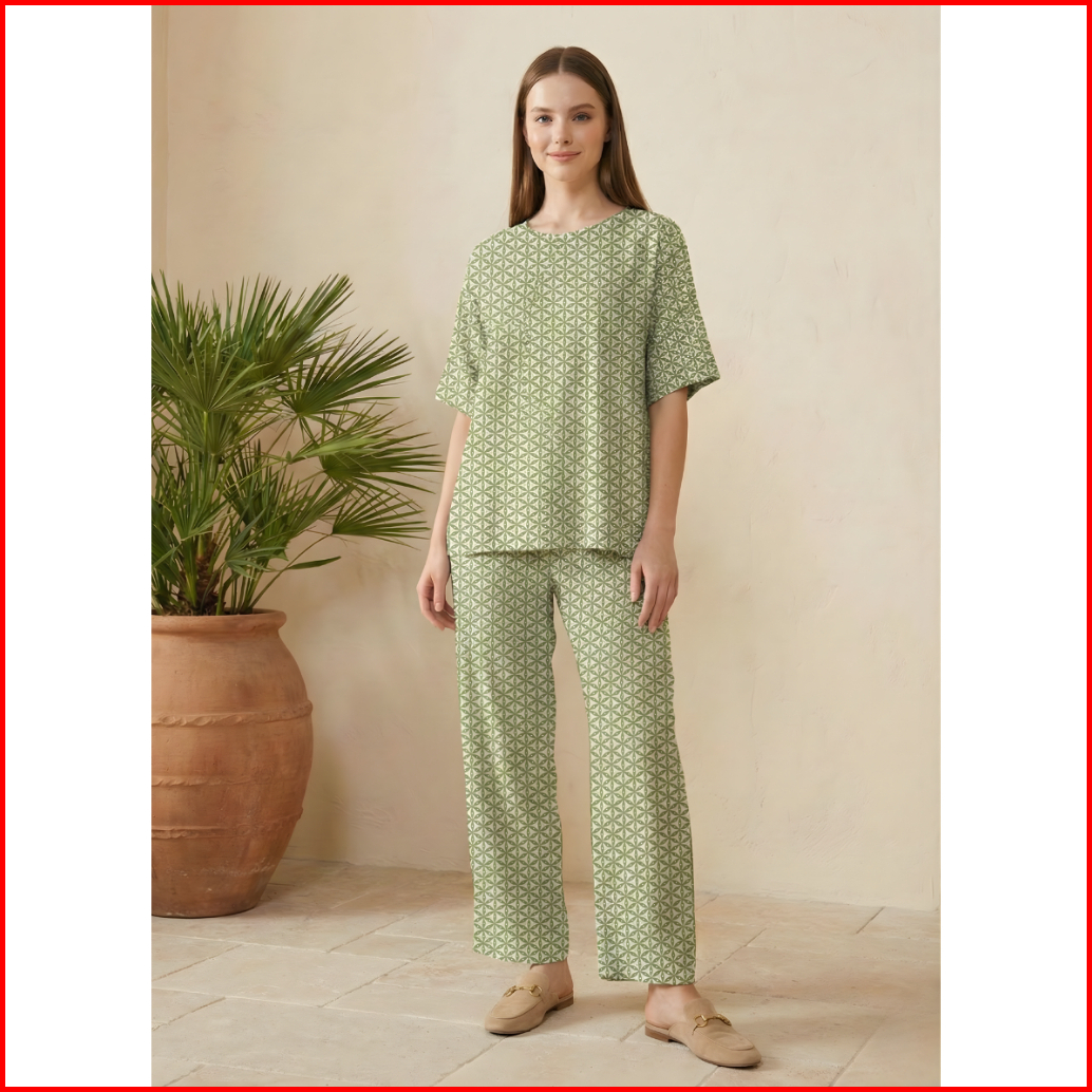 One Set Celana Panjang Wanita Kulot Homewear Daily Set Rayon Adem