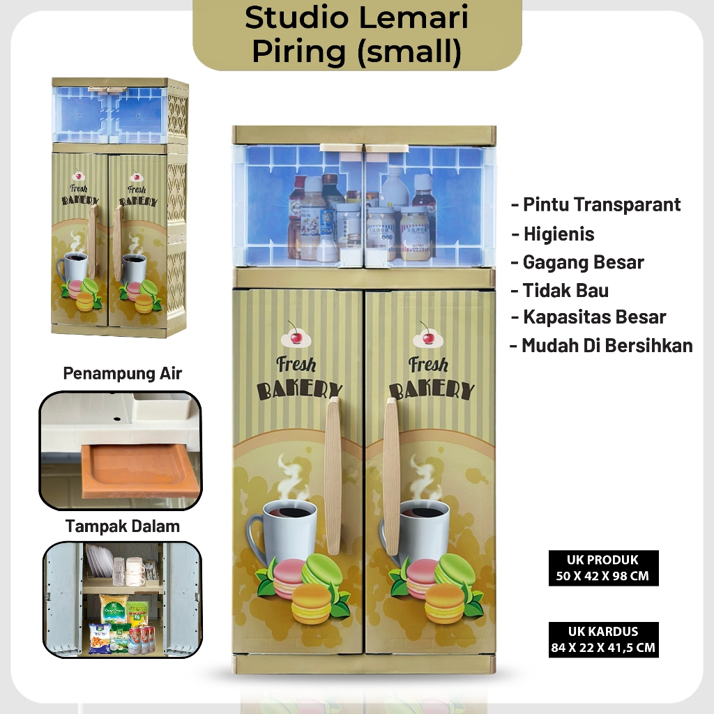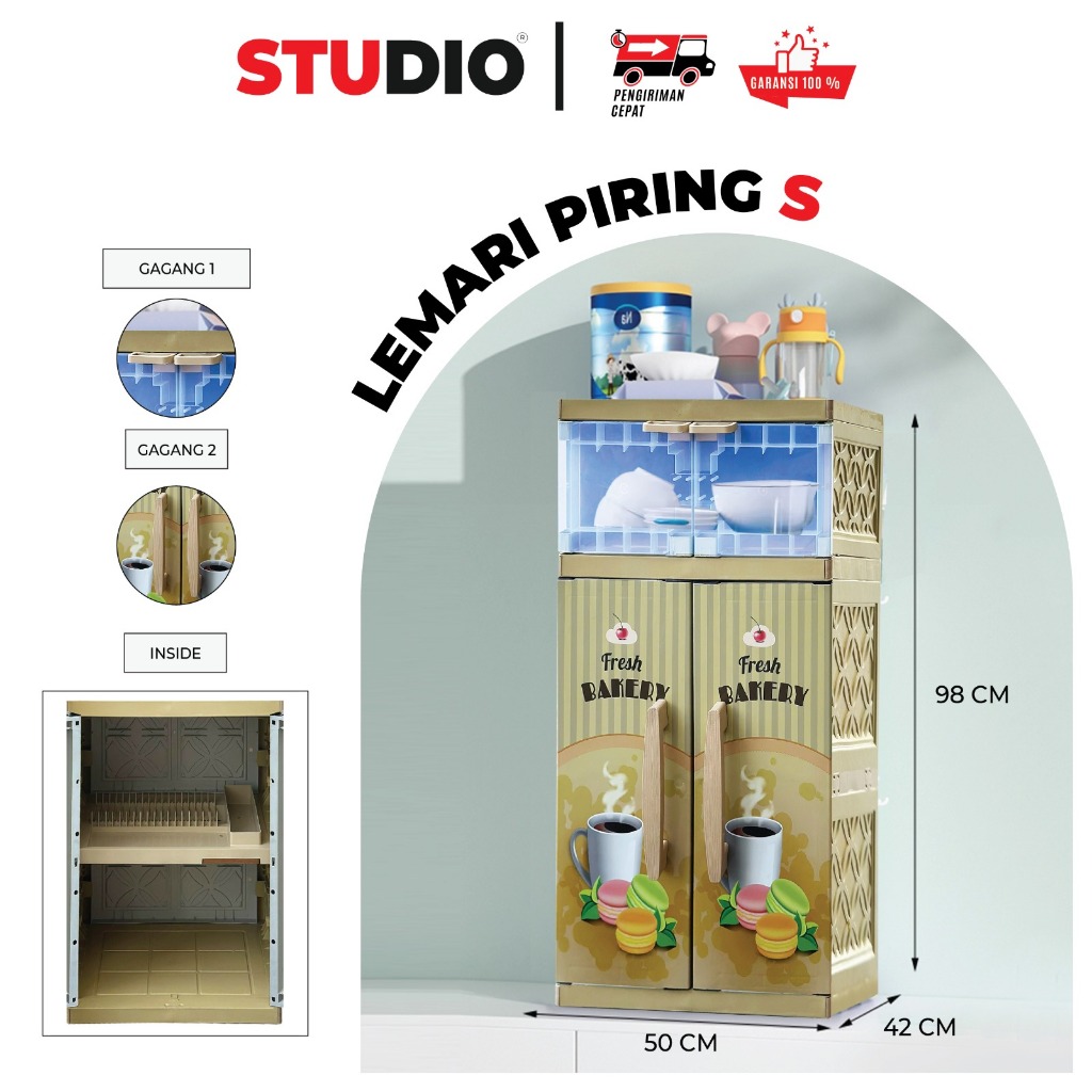 STUDIO - Lemari Rak Piring + Nampan Pembuangan Air + Kaca / Tanpa Kaca Full Rak Serbaguna