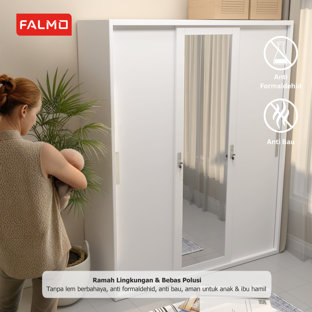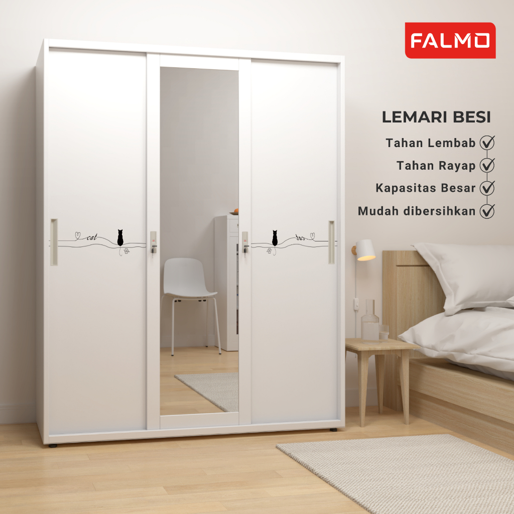 FALMO Lemari Pakaian 3 Pintu/ 150cm 2 gantungan 1 Brankas Pintu Sliding Full Motif