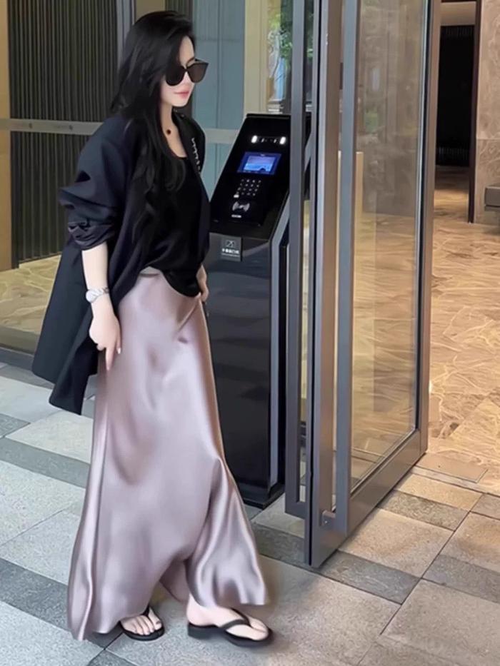 Shenel Rok Satin Maxi Premium Satin Long Skirt 6889 Rok Satin Panjang Rok Duyung Satin Rok Kekinian Bawahan Muslimah Tre