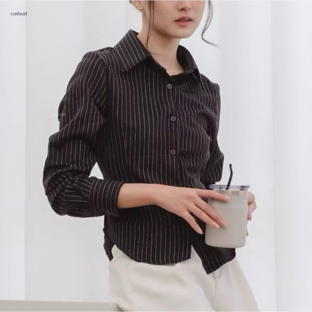 Jossellyn.Co - Luna Stripe Kemeja Fitted - Kemeja Wanita Fitted Stripe Salur Basic Formal Casual -Kemeja Pres Body Atasa