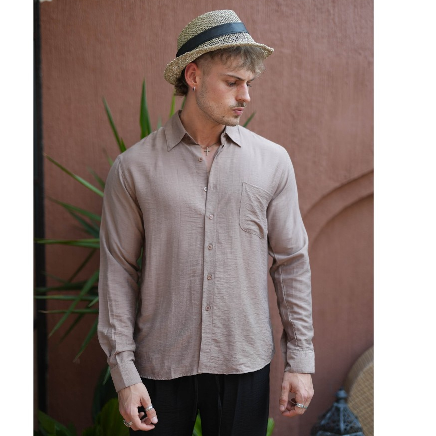 BEACHWELL Kemeja Pria Linen JODA Series Kemeja Linen Polos Premium Lengan Panjang Putih White All Varian