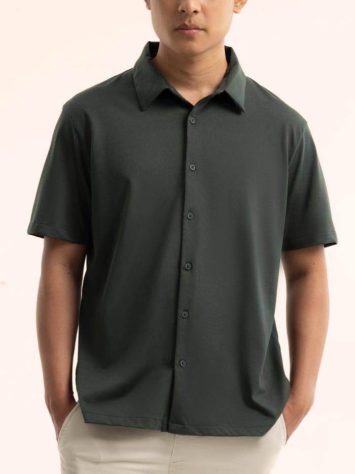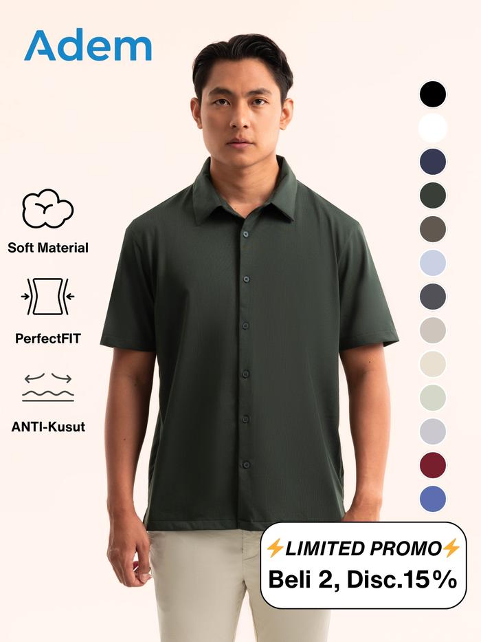 Klotifai - Adem Ss Moss - Kemeja Lengan Pendek Pria | Lembut, Nyaman, Anti-Kusut - S
