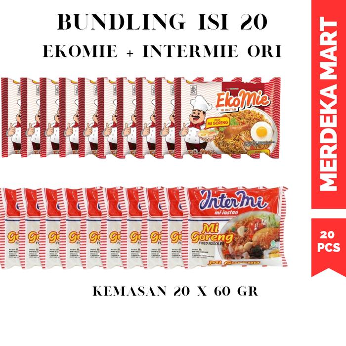 20 Pcs Mie Intermie Dan Ekomie Goreng Ori Pedas Mix Food Noodles - Campur