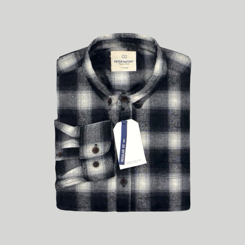 Peternation kemeja flanel pria wool basic panjang regular fit