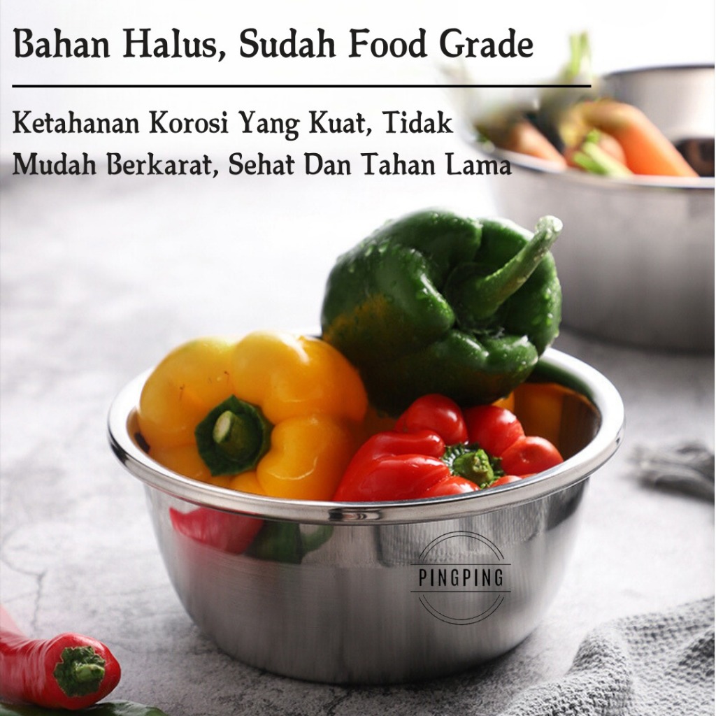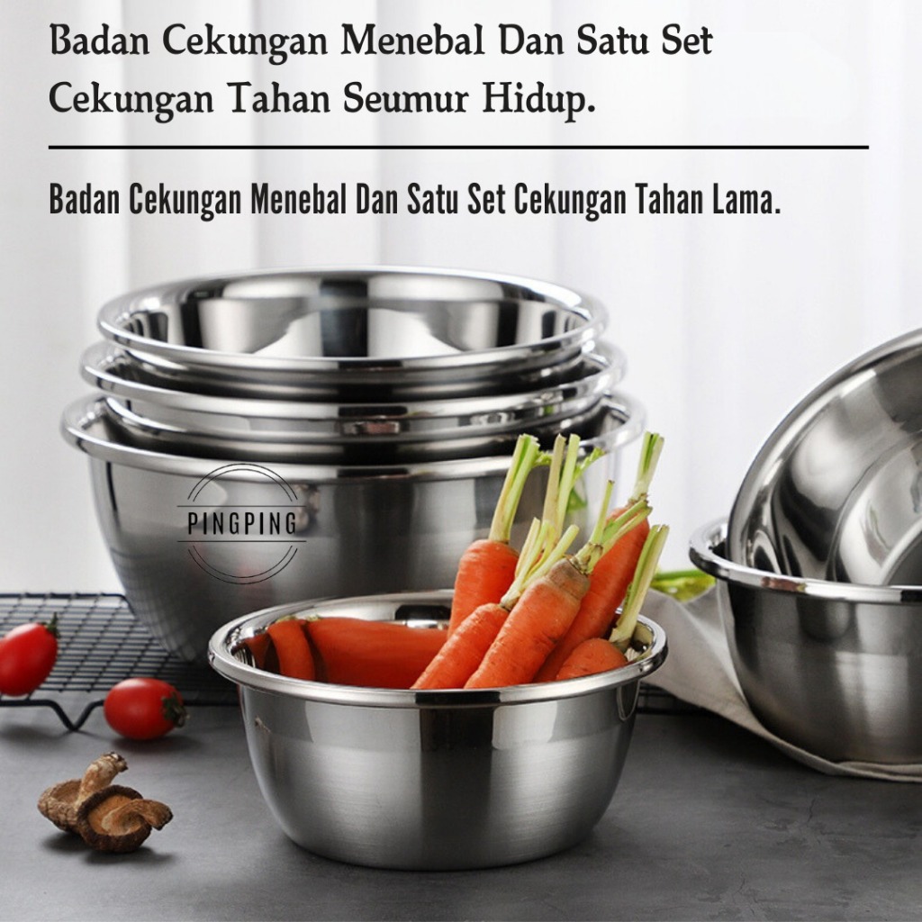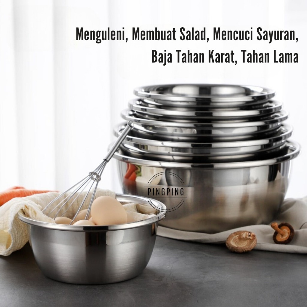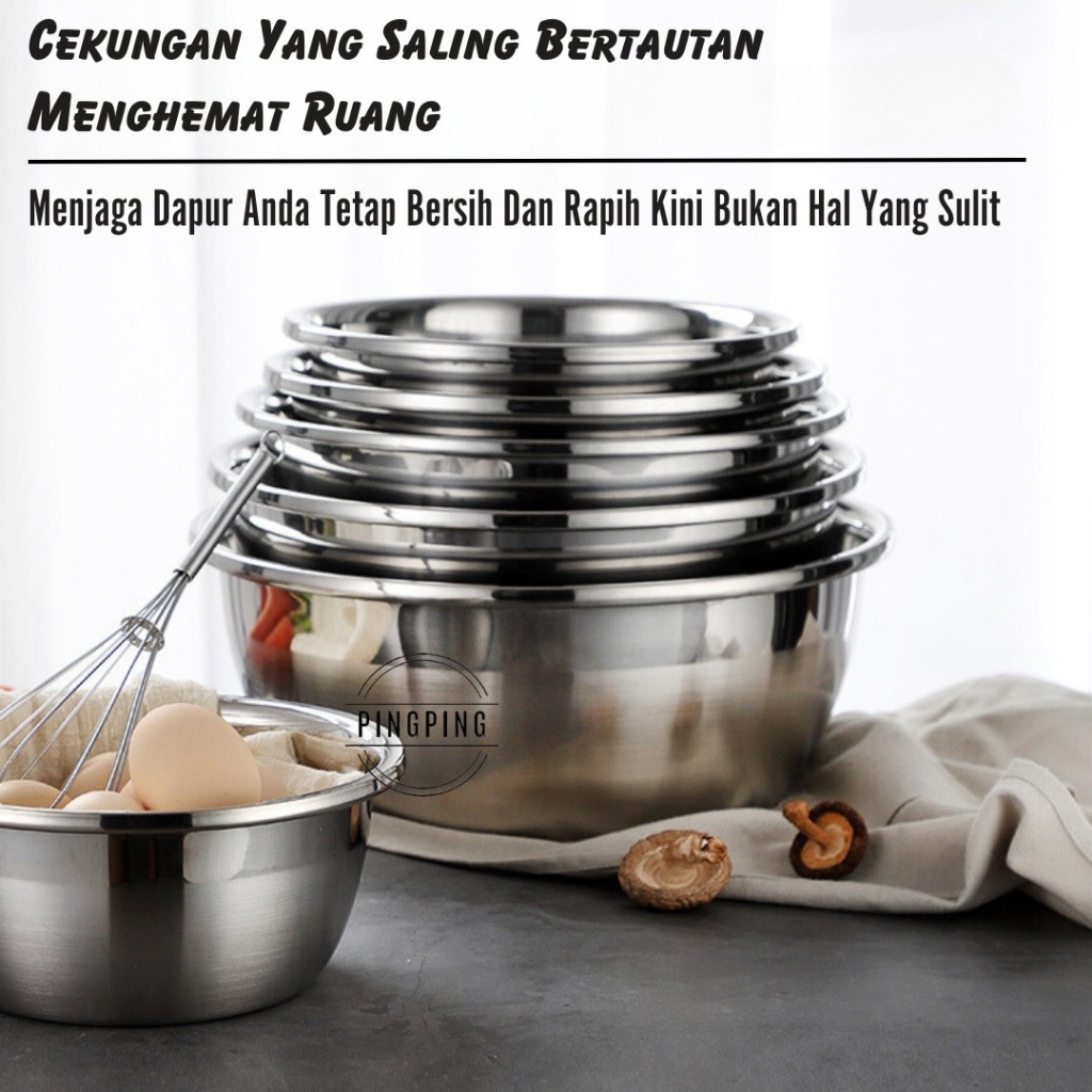 Baskom Set Stainless Tebal SET 6PCS SUS 304 20CM, 22CM, 24CM, 26CM, 28CM, 30CM Wadah Cuci Beras Buah Sayur Set Baskom Mangkuk Premium Isi 6 Pcs