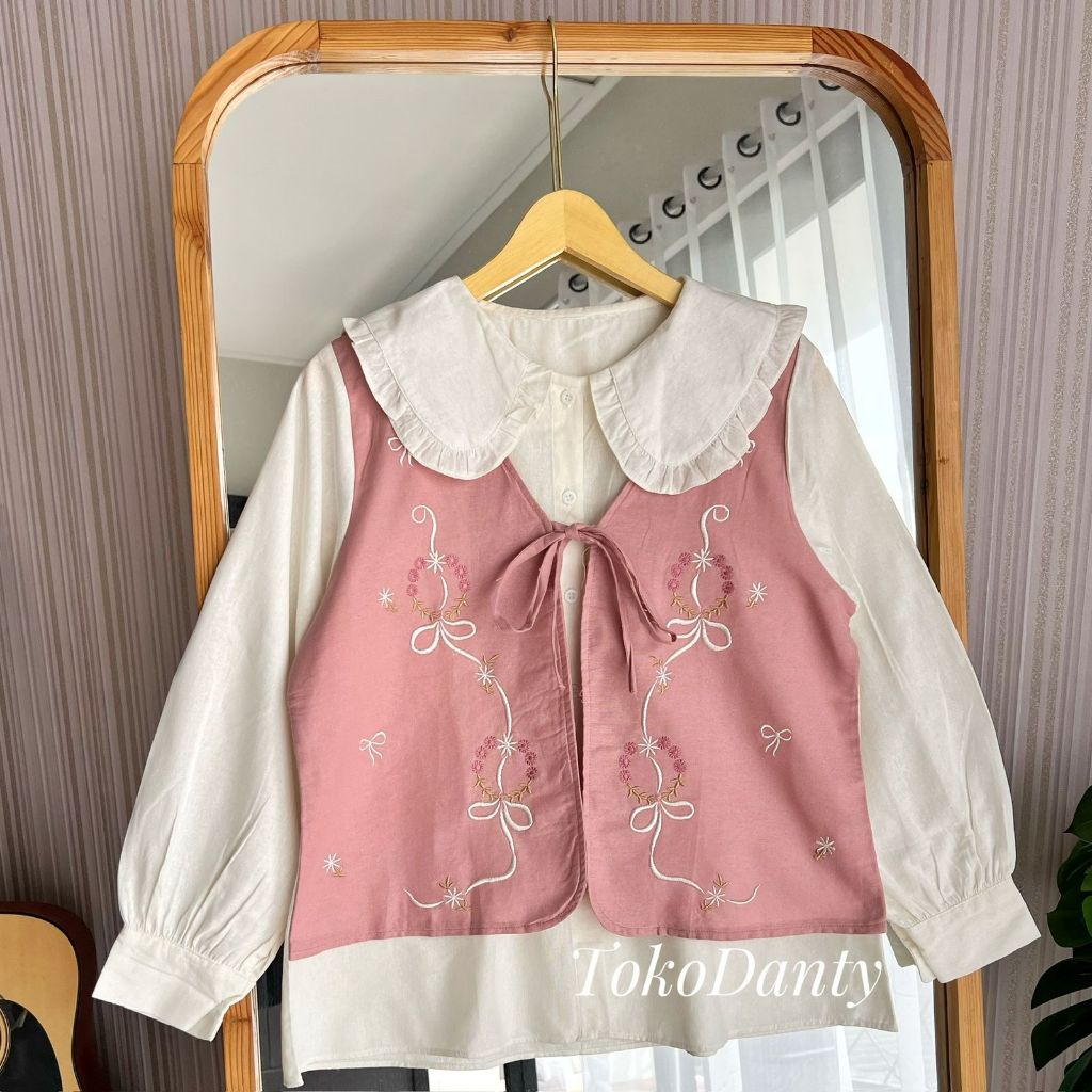 Kamari Shirt Atasan Kemeja Wanita Lengan Panjang Katun Linen Bordir
