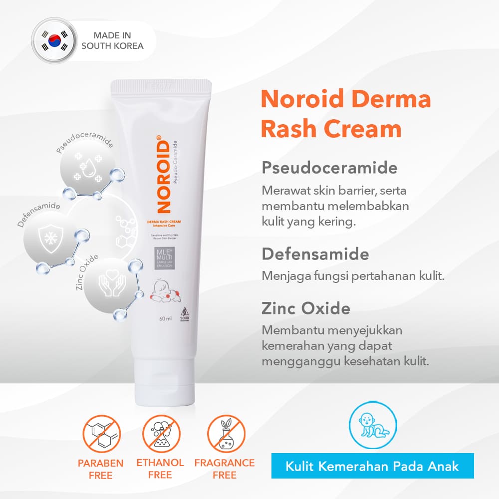 Noroid Derma Rash Cream Pelembab Kulit Anak/Atasi Kulit Kering Pada Anak 60ml