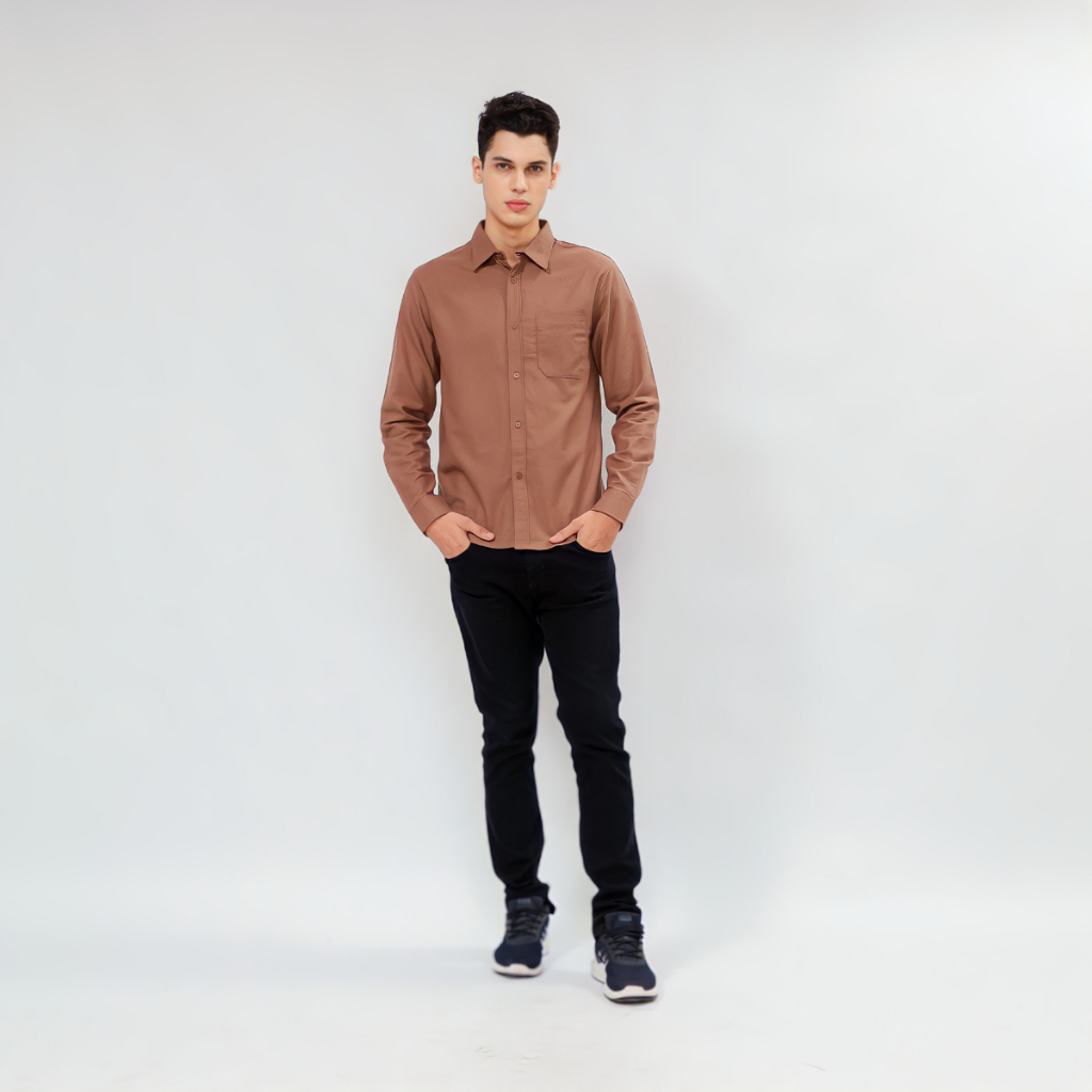 CASUALUXE Kemeja Pria Lengan Panjang Polos Cokelat Cerah Linen Softy Slimfit