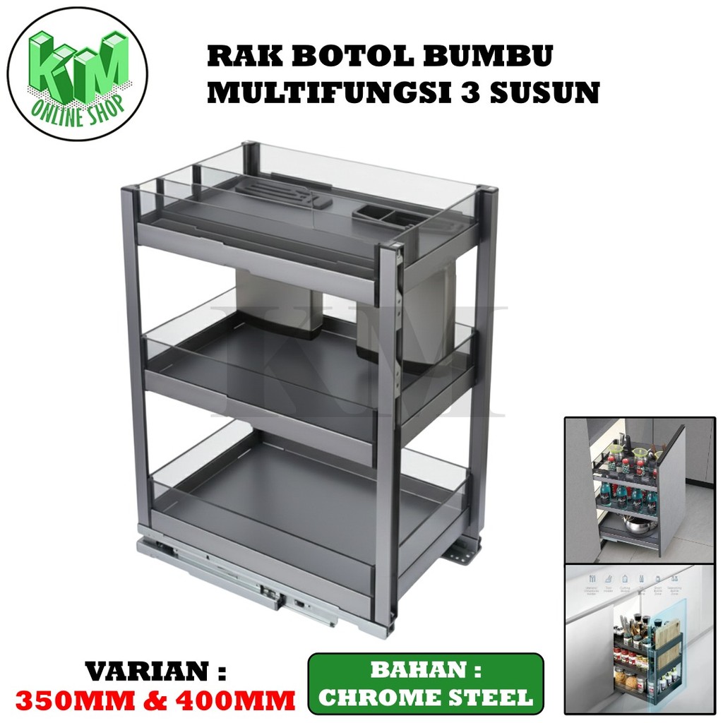 Rak Dapur 3 Susun Dapur Serbaguna Botol Piring PIS4UChrome Stainless Kitchen Set