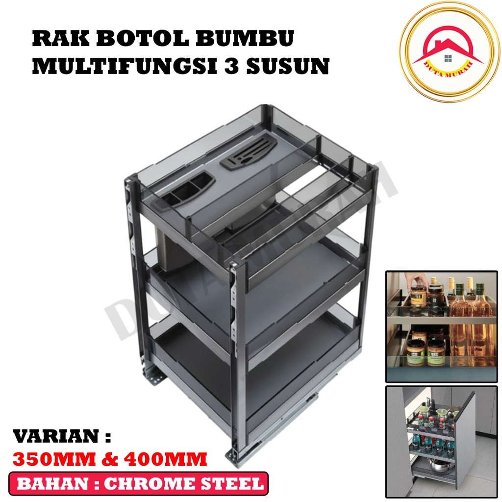 Rak Serbaguna 3 Susun Rak Dapur Serbaguna Botol Piring PIS4UChrome Stainless Kitchen Set