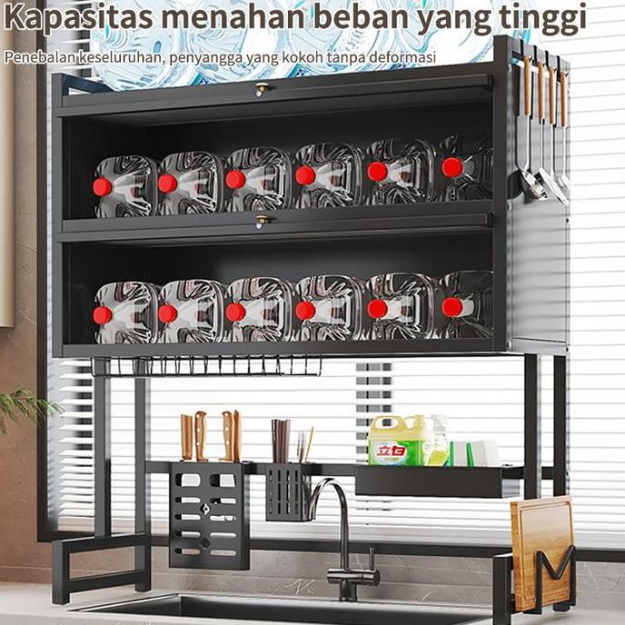 Rak Piring Wastafel Tertutup Dapur Stainless Steel Anti Karat & Korosi Model 65cm-105cm Kabinet Hitam/Putih
