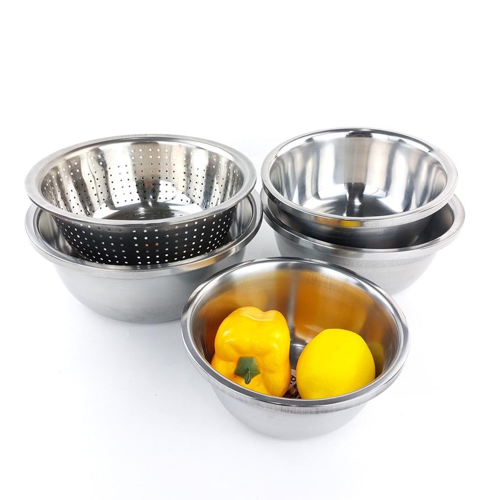 INDOLINE - BASKOM SET STAINLESS STEEL 5 IN 1 - BASKOM DENGAN SARINGAN TIRISAN SET HIQH QUALITY - WADAH CUCI BERAS BUAH SAYUR SERBAGUNA