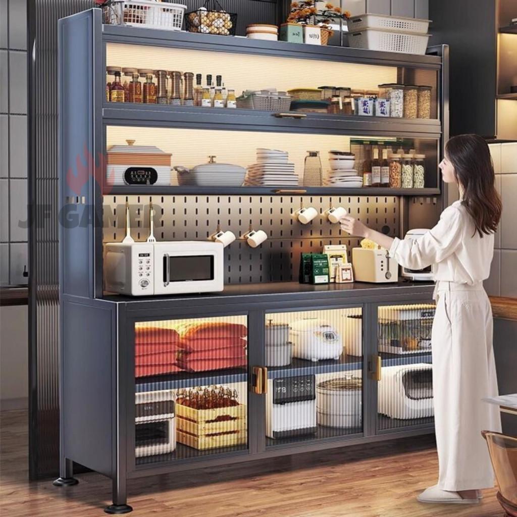 Lemari Piring Multi-Layer Rak Dapur Serbaguna Rak Penyimpanan Microwave Oven Dengan Roda Pintu