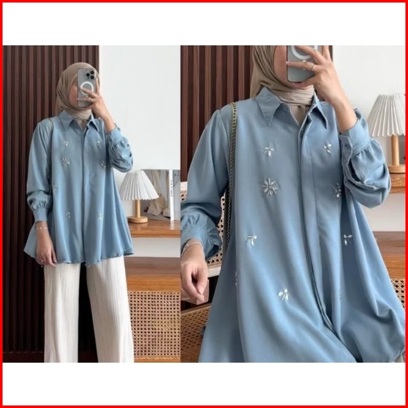 Kemeja Payet Motif Kekinian Wanita Polimicro Mix