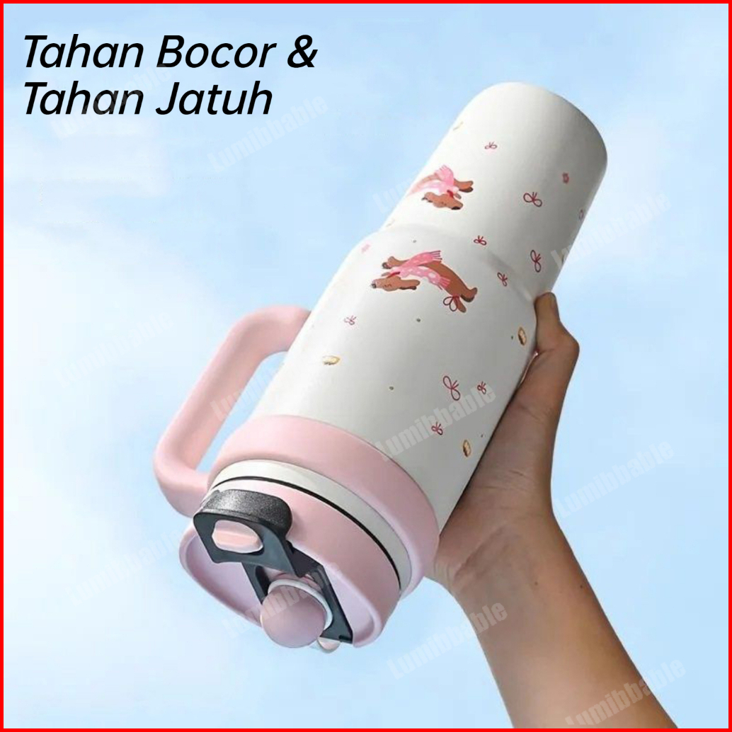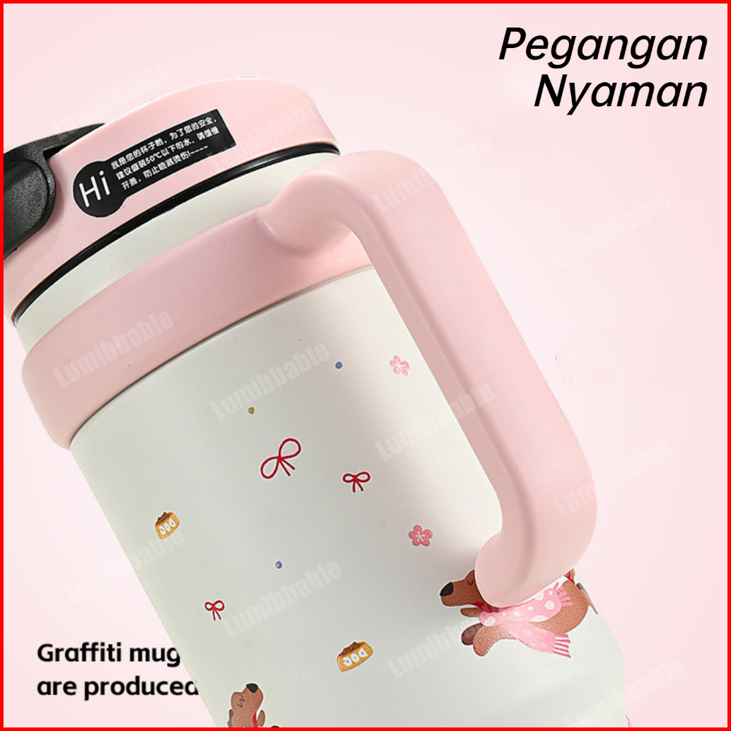 Tumbler Stainless Handle Happy Animal 900ml Sus316 Tumbler Stainless Sus316 Tumbler Handle Pastel Cute Tumbler Lucu Tumb