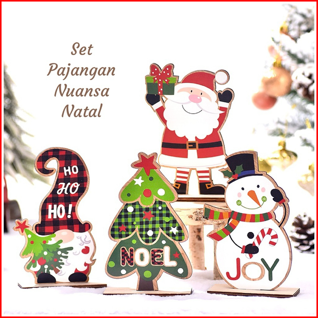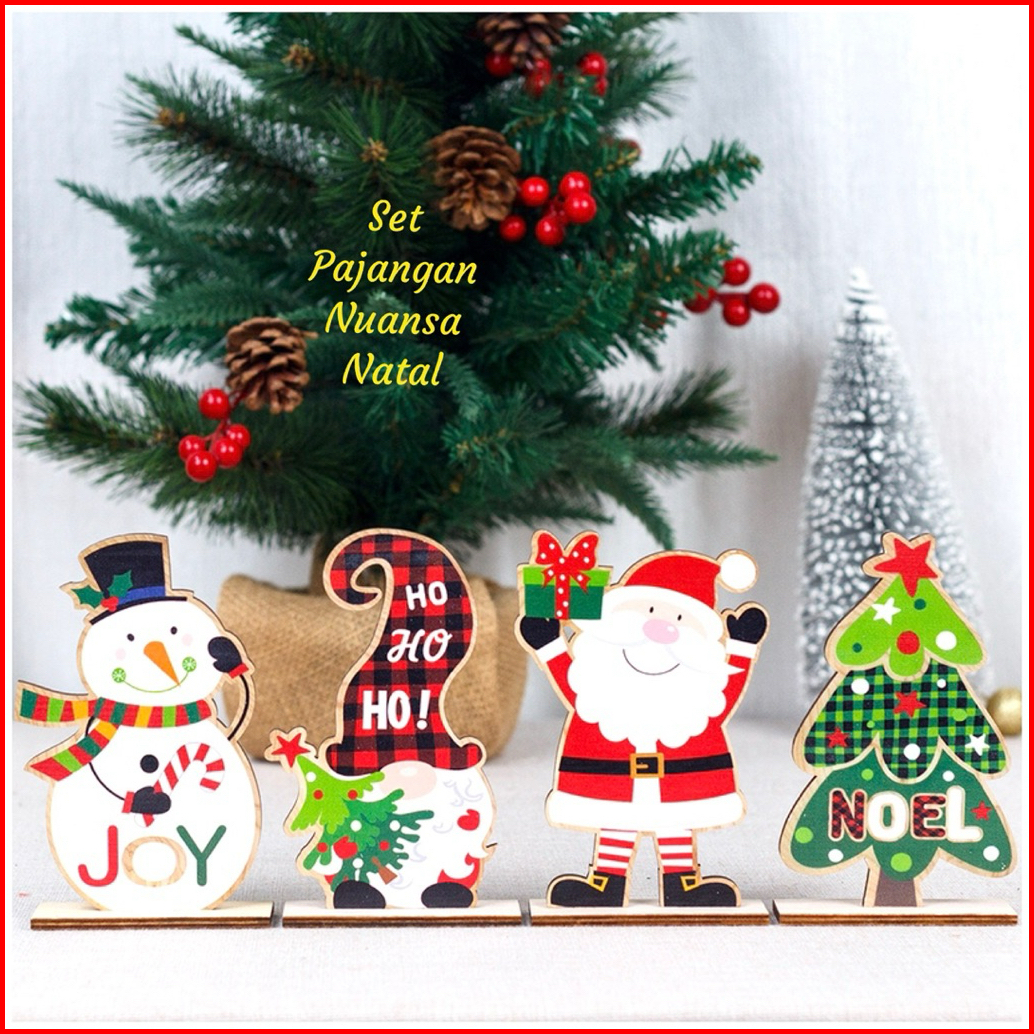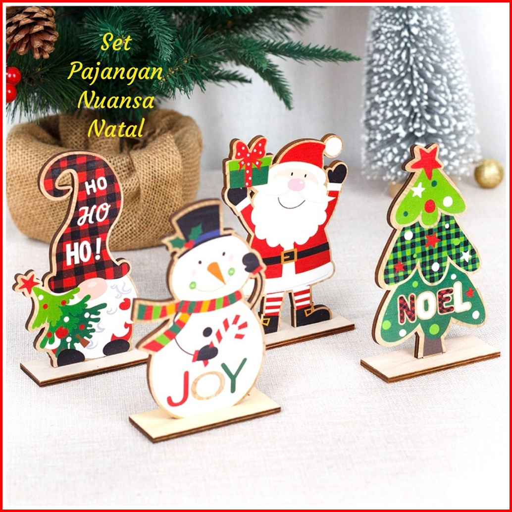 Isi 4 Motif Set Pajangan Nuansa Natal Bahan Kayu Cocok Untuk Dekorasi Natal Kado Natal Hiasan Natal Christmas Ornament