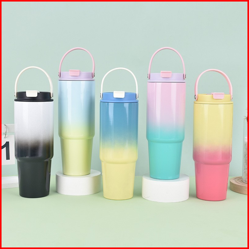 Termos Awet Panas Tumbler Gradasi With Handle Tumbler Aesthetic Bahan Stainless Steel Kapasitas 900ml