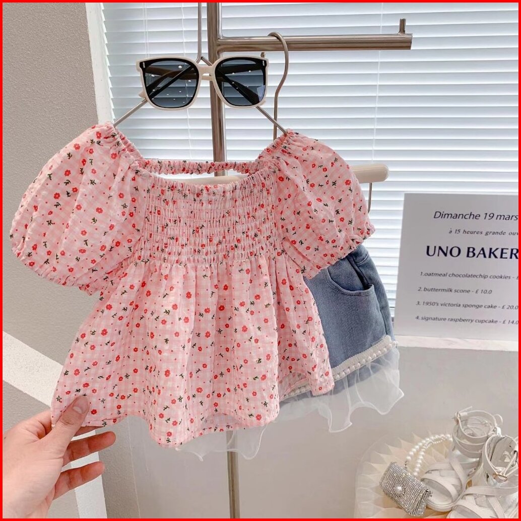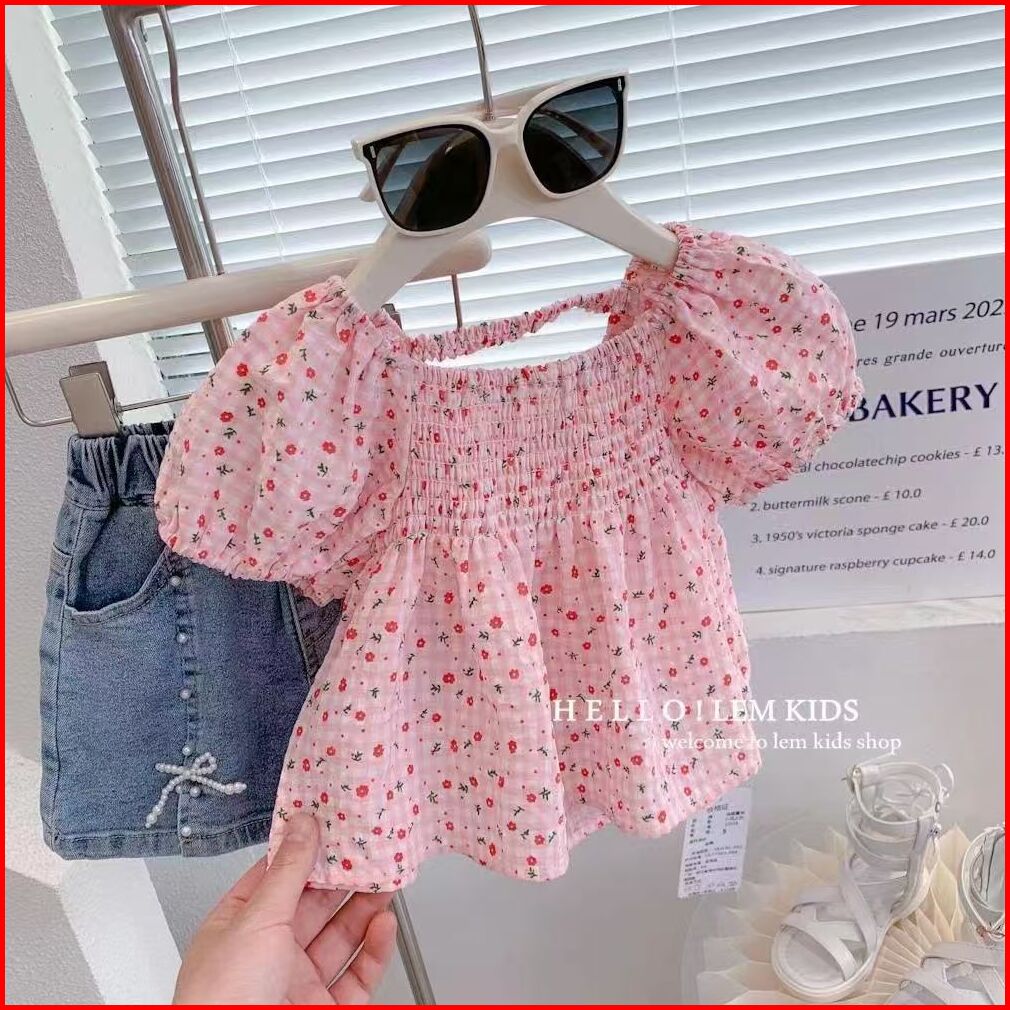 2-9 Tahun Baju Blouse Anak Perempuan Korea Lengan Pendek Bunga Santai Cute Nyaman
