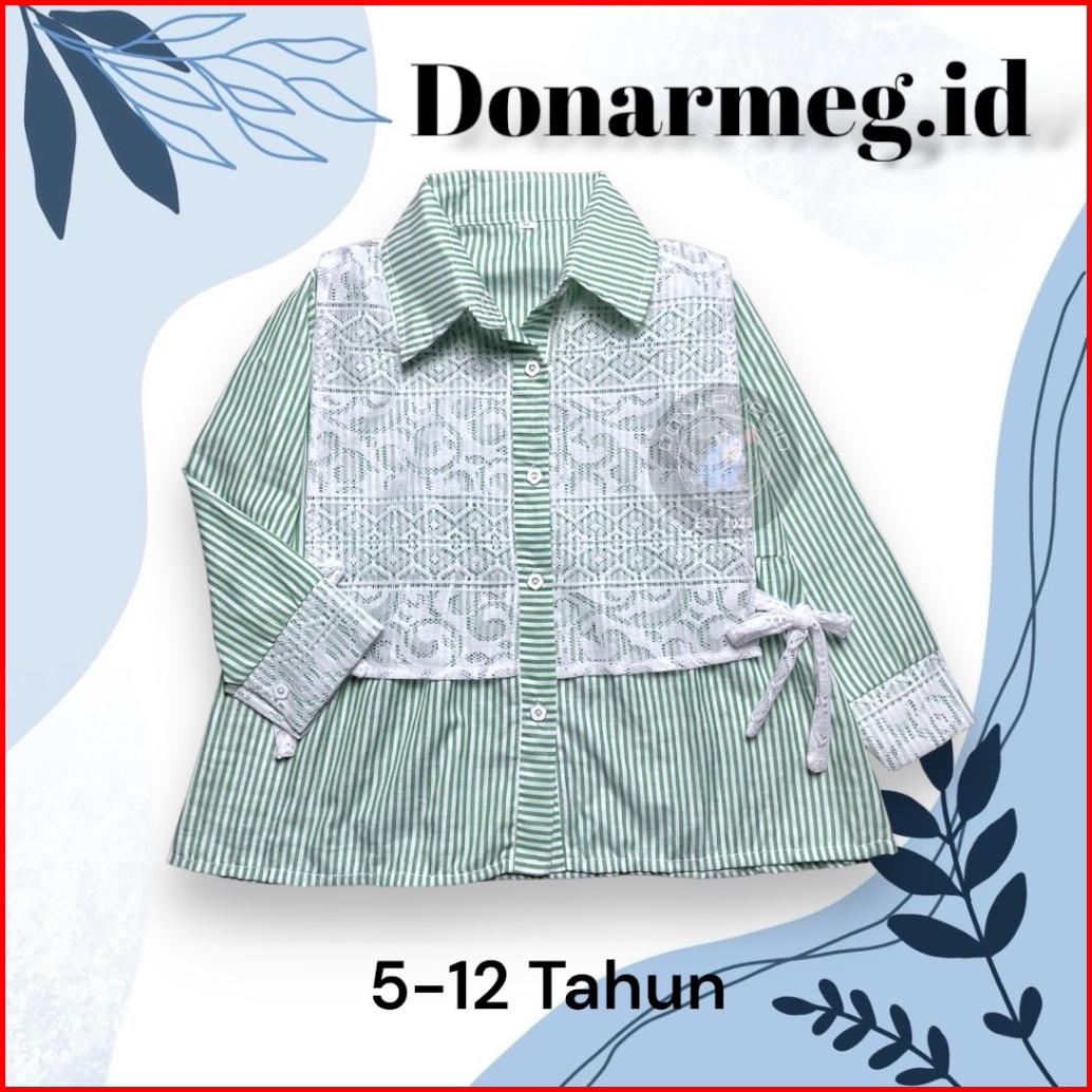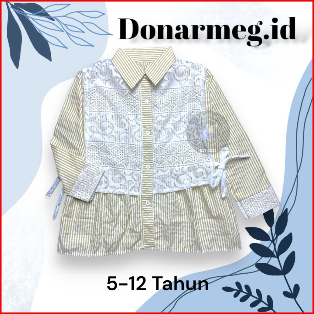 Donarmeg.id - Kemeja Salur Katun Mix Brokat Anak Arumi Blouse Kemeja Salur Bokat Blouse Atasan Anak Perempuan Blouse Ana