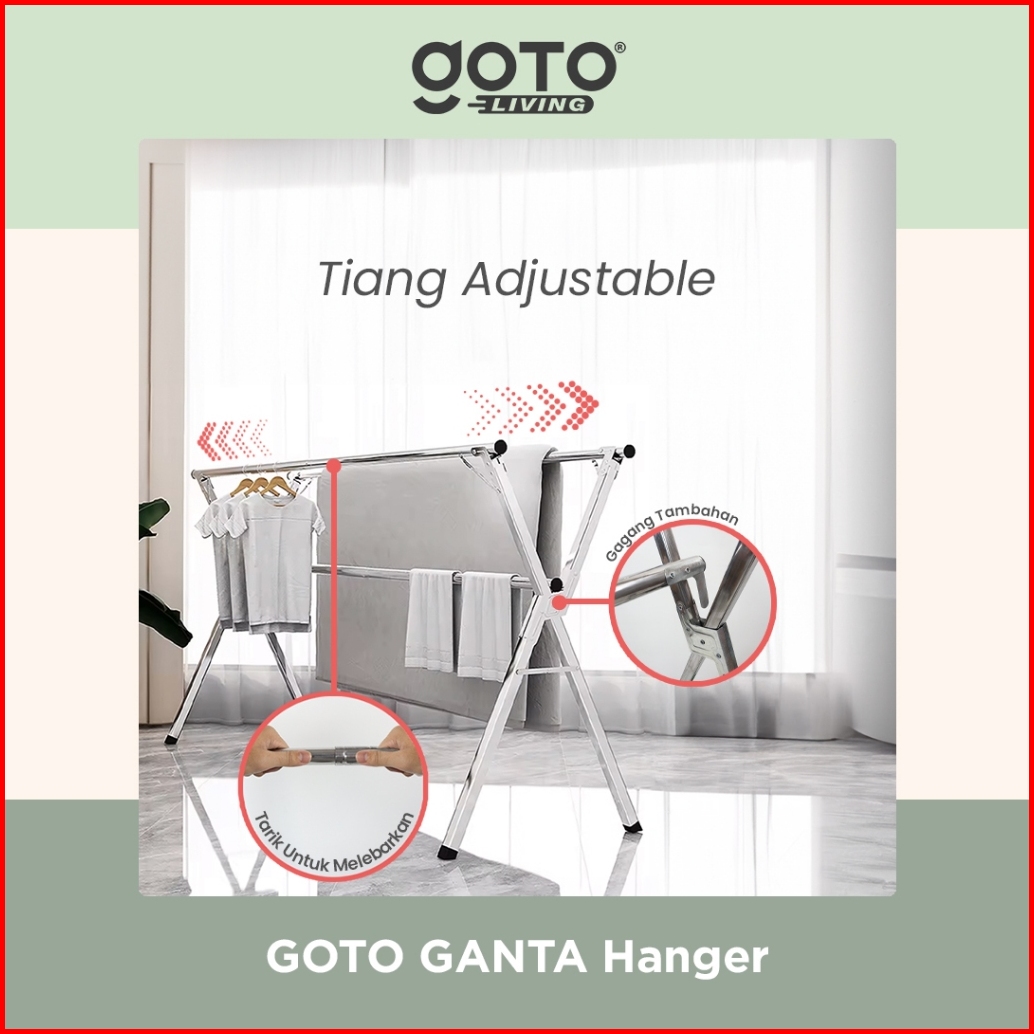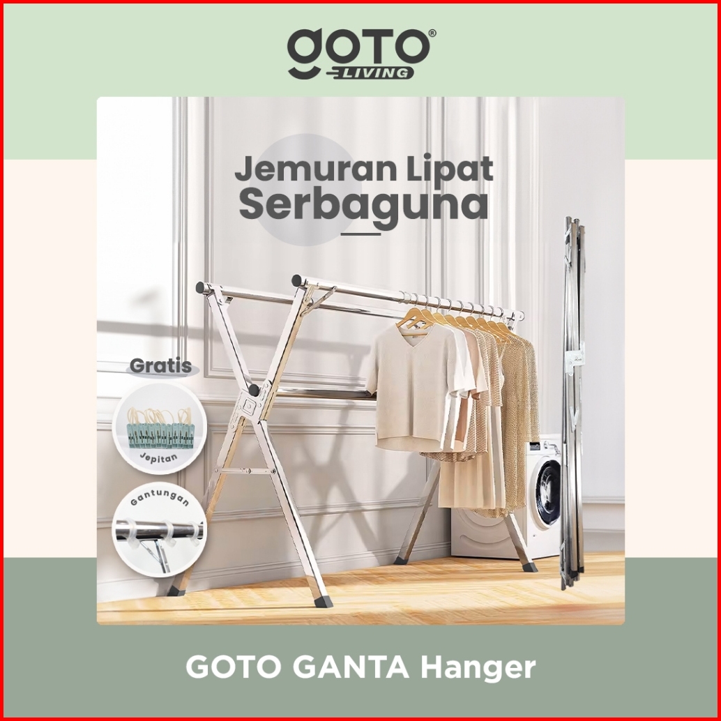 Goto Ganta Tiang Jemuran Hanger Baju Pakaian Handuk Lipat Portable