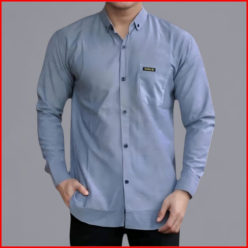 Kemeja Polos Pria Lengan Panjang Model Slimfit Body Bahan Katun Kulitas Import