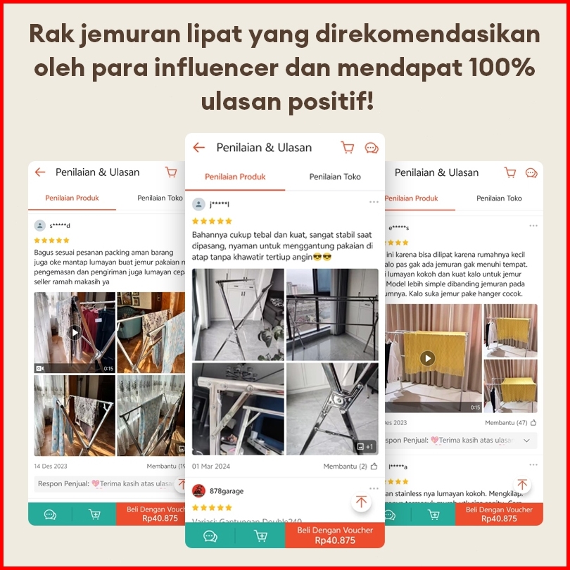 Jemuran Baju Lipat Stainless Steel 1 2 3 5 Tiang Rak Pakaian Lipat Stainless Steel Dengan Roda Anti Karat Kuat Kokoh