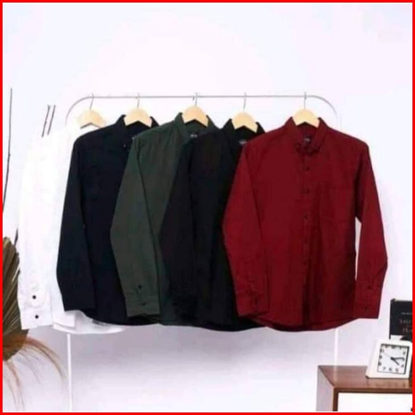 Kemeja Hem Polos Pria Cowok Lengan Panjang Kasual Formal Warna Soft Blue Biru Muda Jumbo