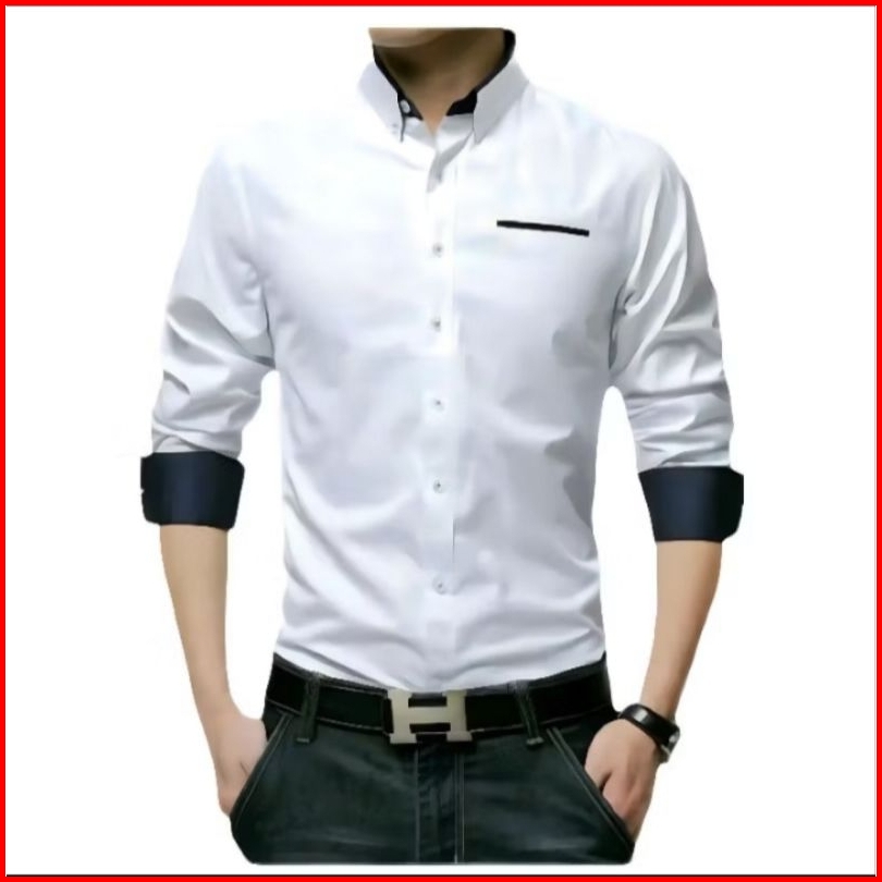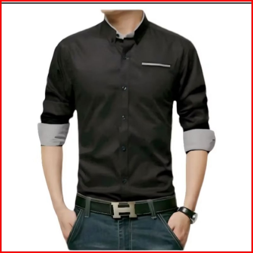 Kemeja Pria Polos Kombinasi Slimfit Casual Tangan Lengan Panjang Kemeja Pria Carson Putih Hitam Abu Navy Distro Keren Fo