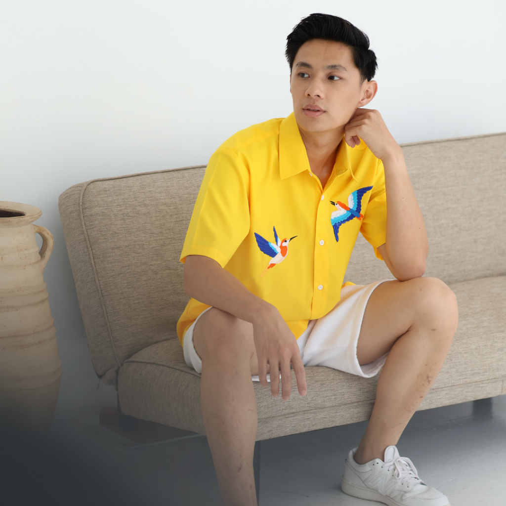 Kemeja Pria Lengan Pendek Premium Bordir | HUMMINGBIRD Black by KINKAMI
