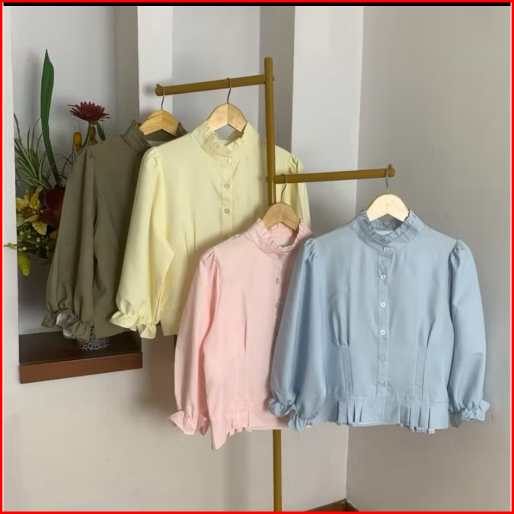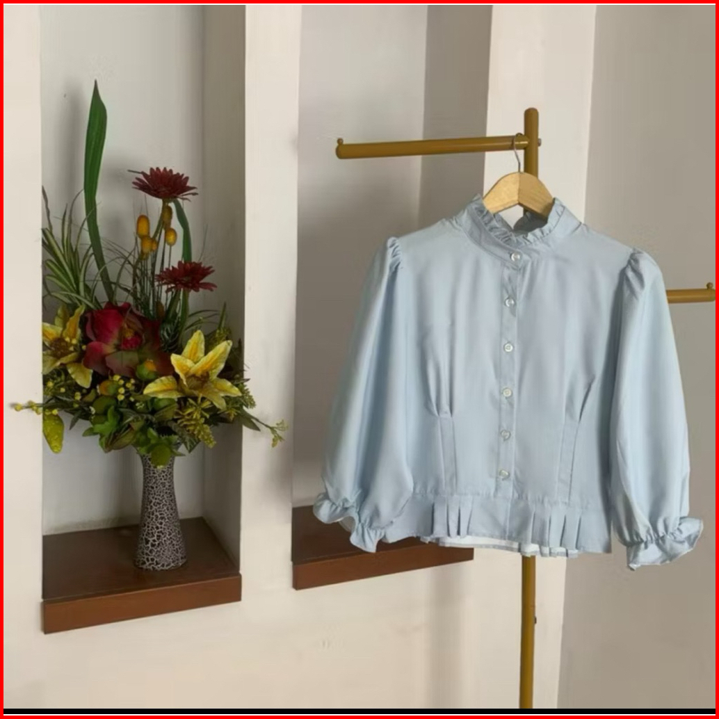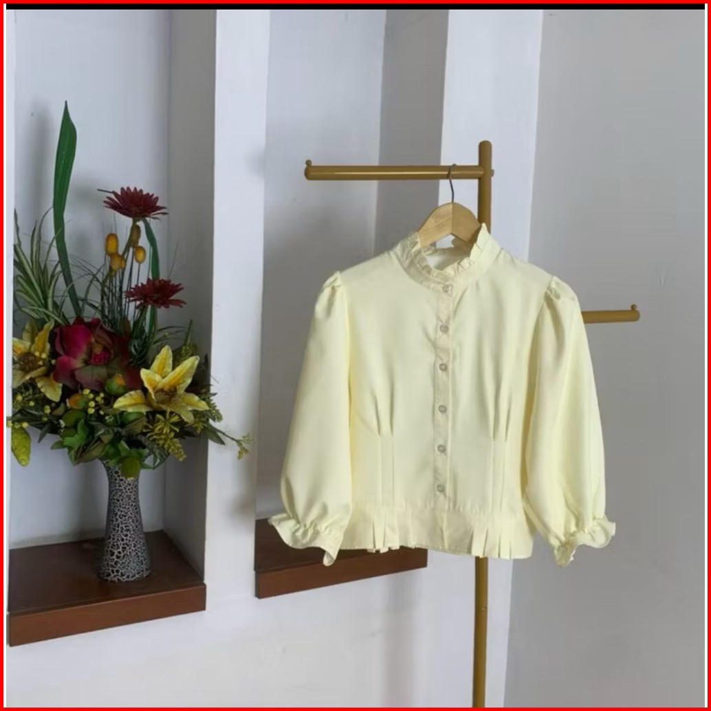 Atasan Wanita Blouse Dengan Kerah Rempel Dan Lengan Balon Baju Lengan Kasual Pakaian Wanita Modis