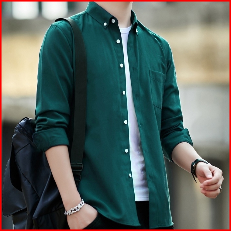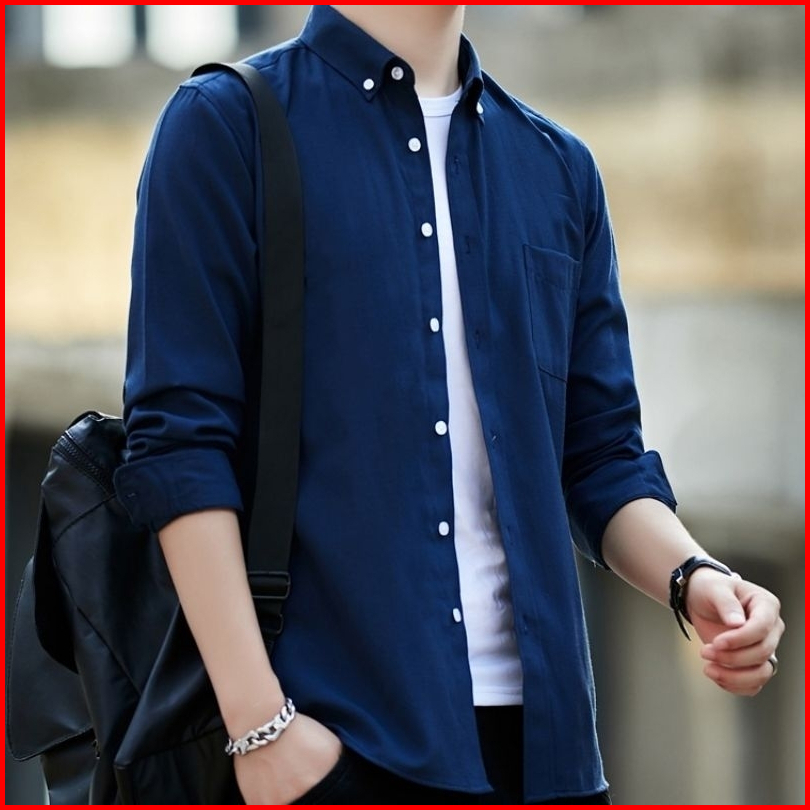 Kemeja Pria Lengan Panjang Dewasa Katun Premium Warna Soft Blue Hitam Putih Nevy Maroon Army Abu Abu
