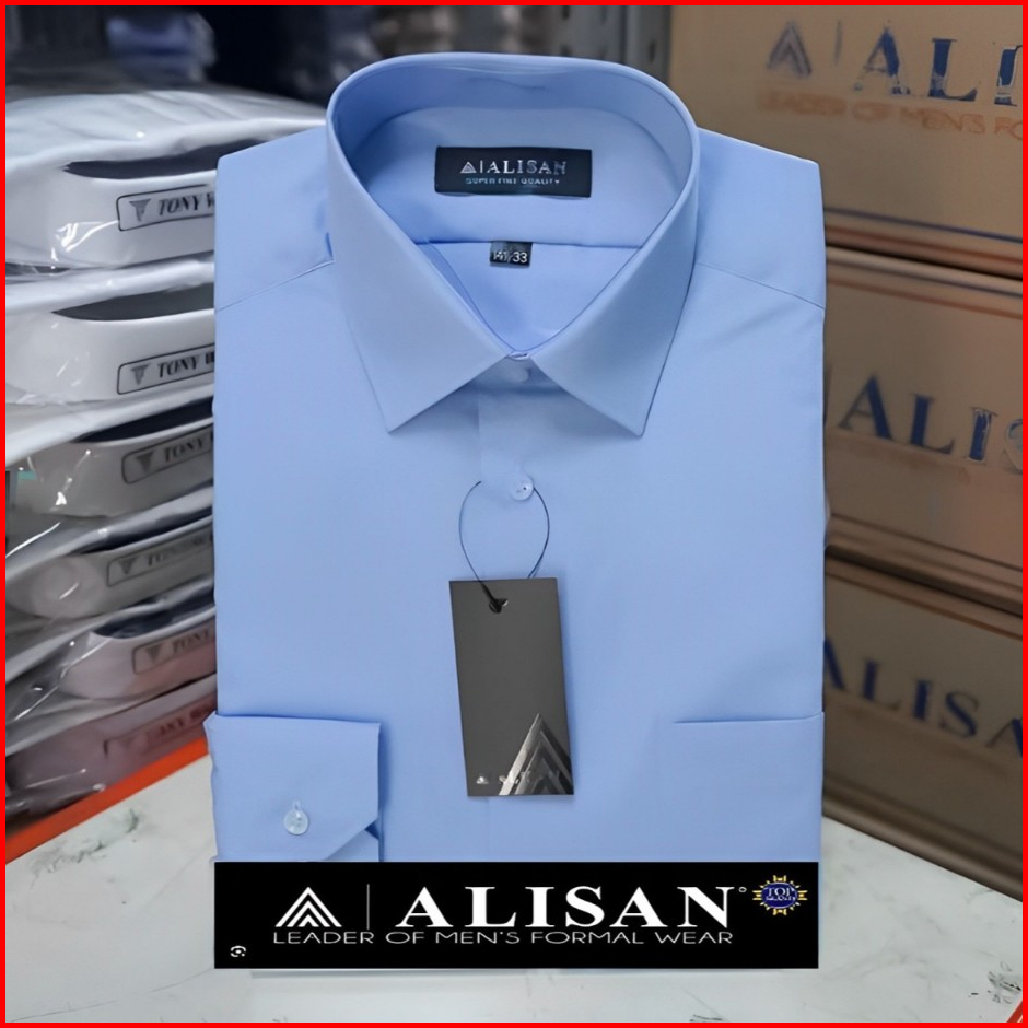Kemeja Formal Pria Polos Alisan Biru 2 Sofblue Birumuda Krah Berdasi Slimfit Lengan Panjang - Casual