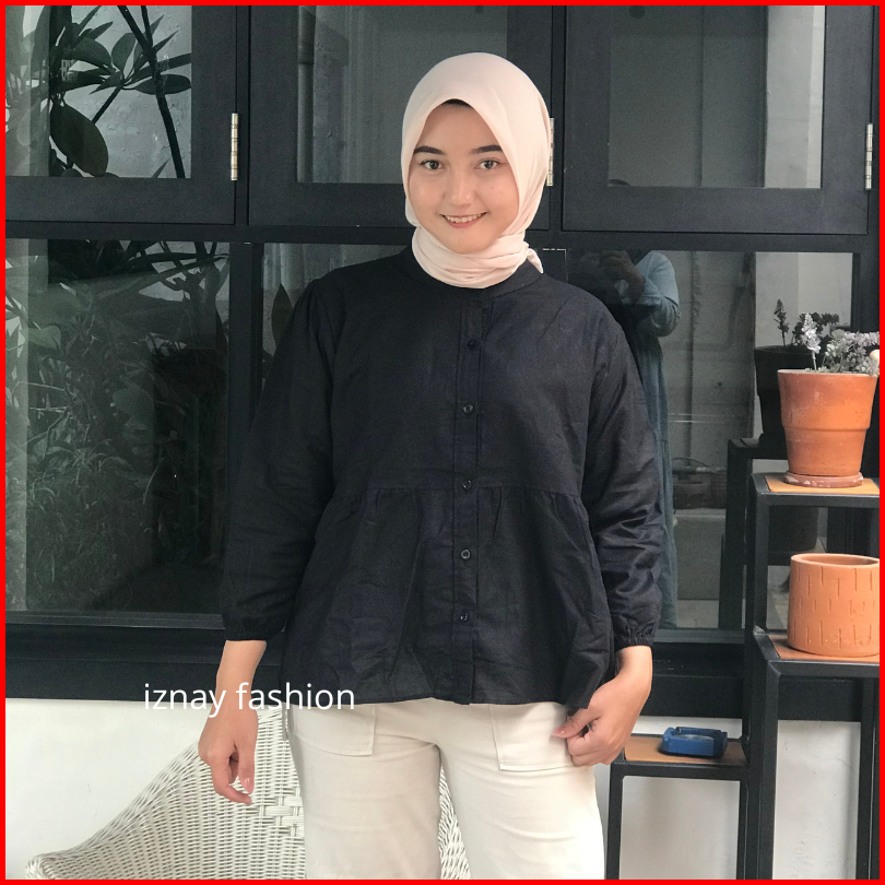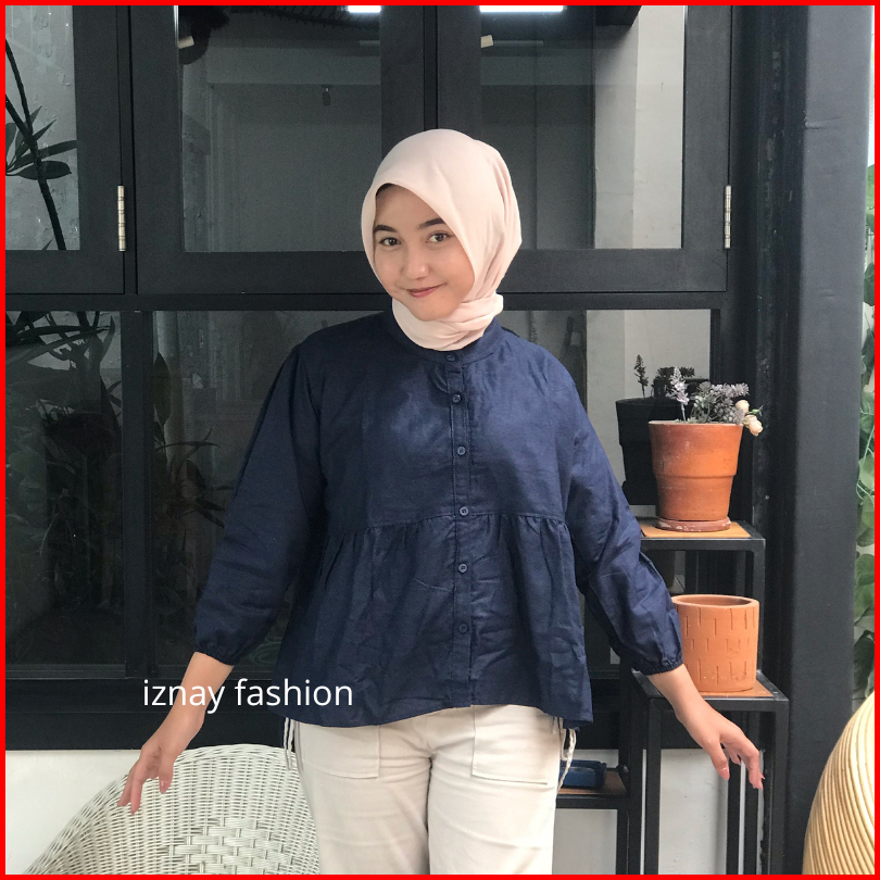 Iznay Fashion - Kyren Blouse Wanita Casual Kancing Aktif