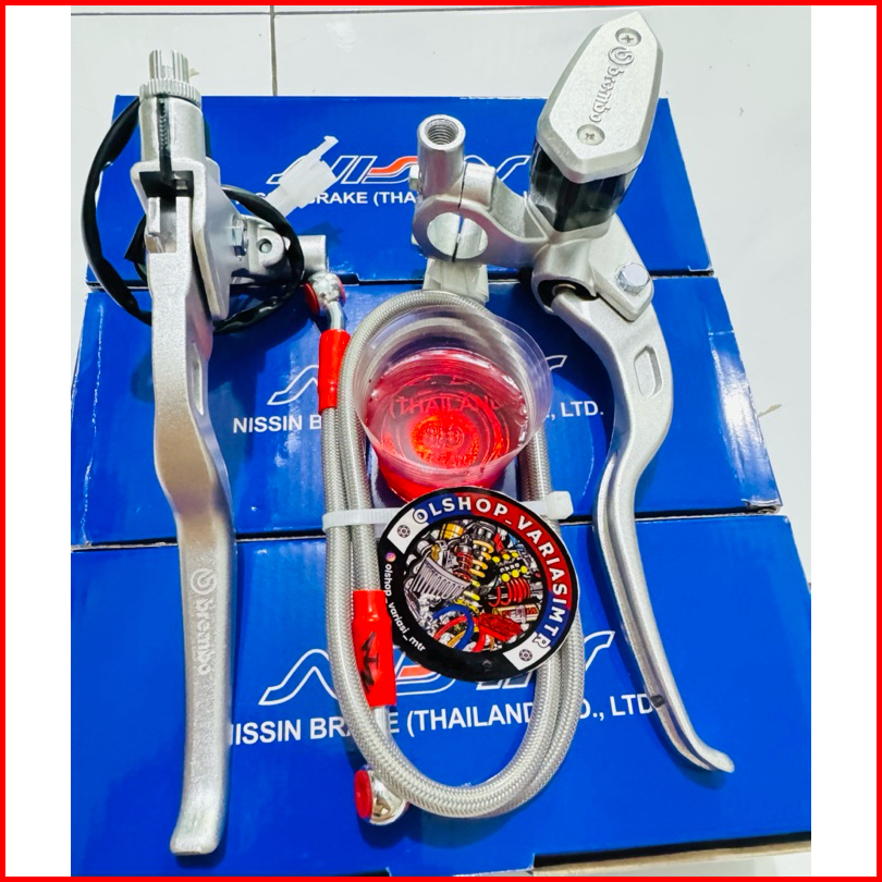 Terbaru Master Rem Sepasang Kiri Kanan Tabung Oval Full Silver Selang Rem Cakram 90-95cm