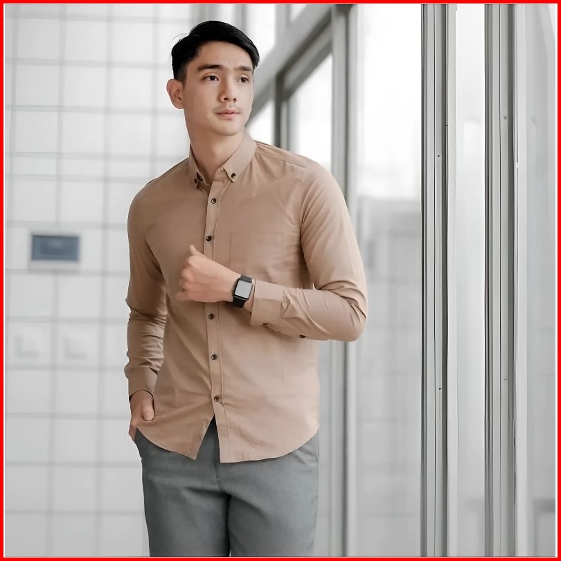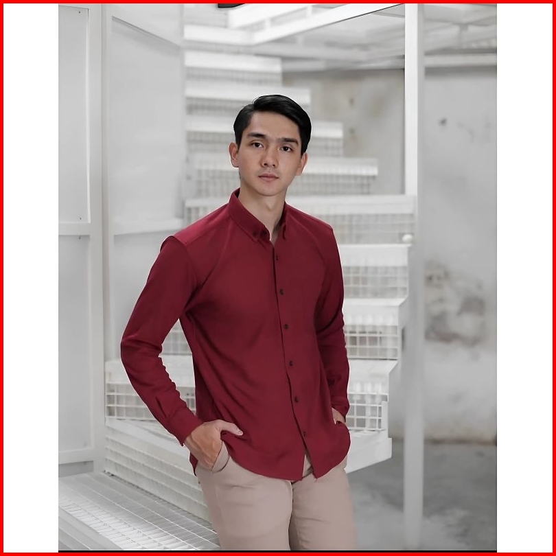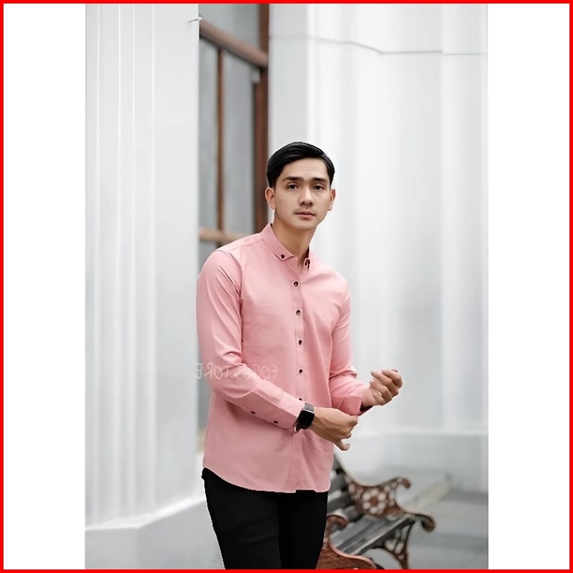 Kemeja Pria Polos Lengan Panjang Pink Merah Muda Casual Formal Katun Premium