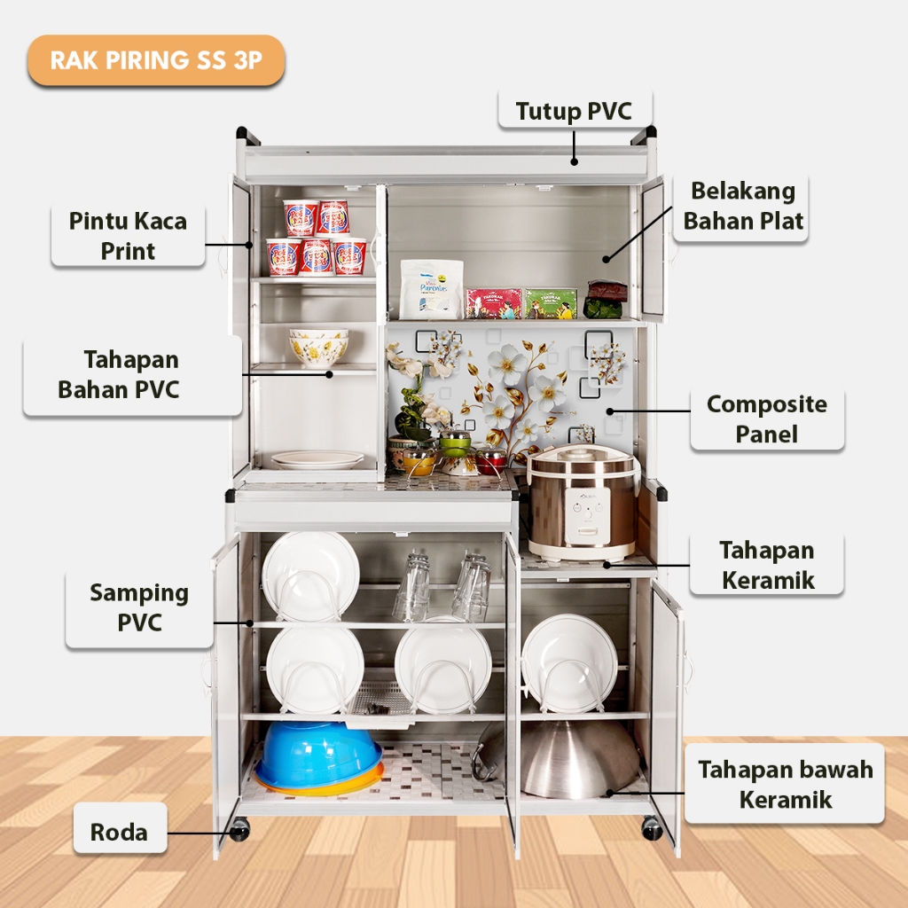 RAK PIRING 3 PINTU BESAR SS3P Lemari Rak Piring Penyimpanan Makanan Ukuran Besar Luas