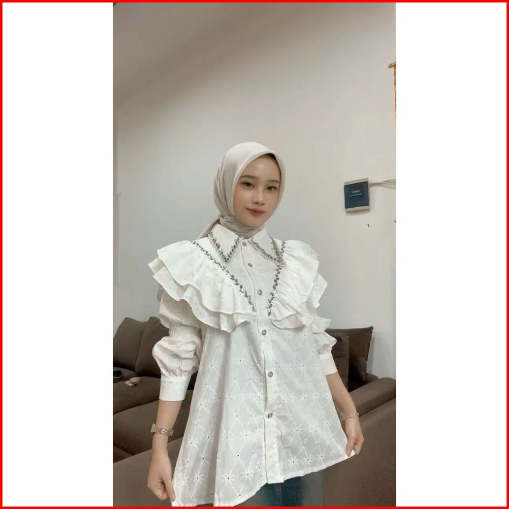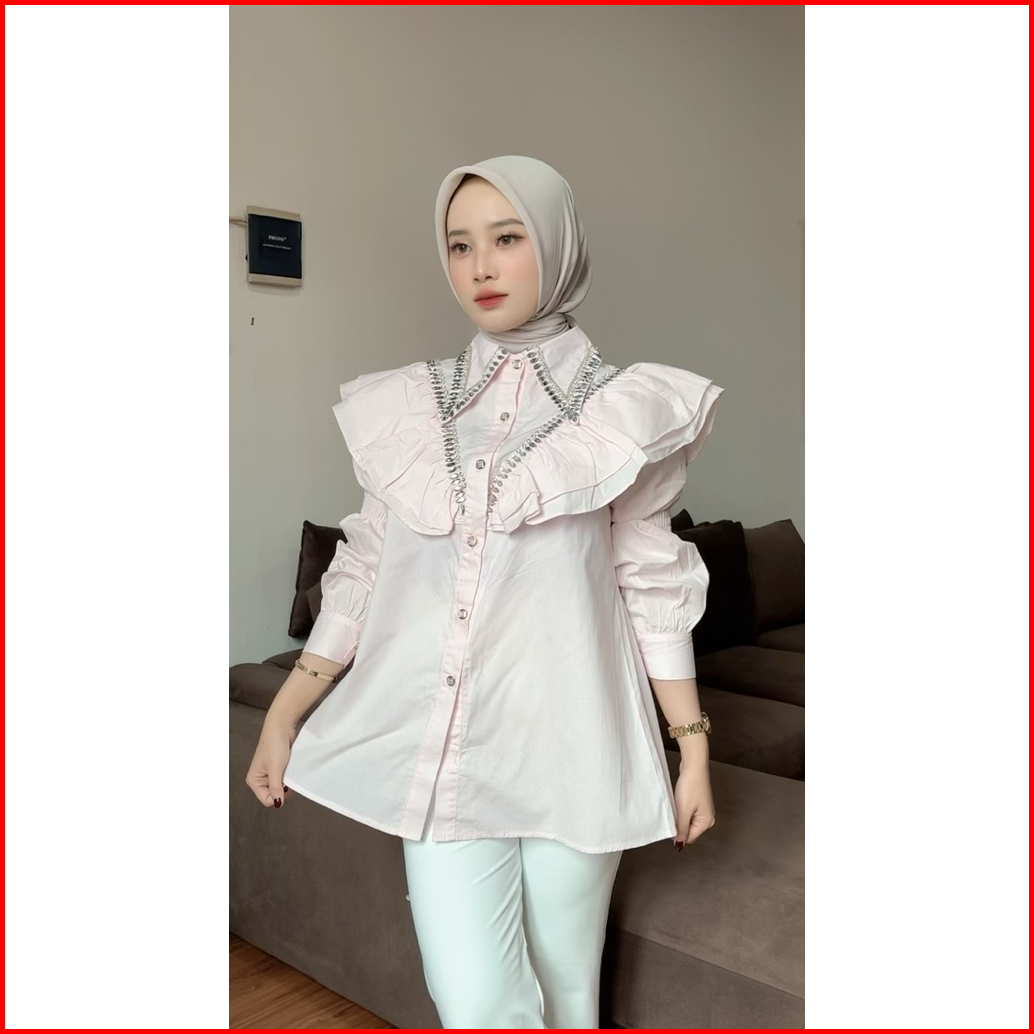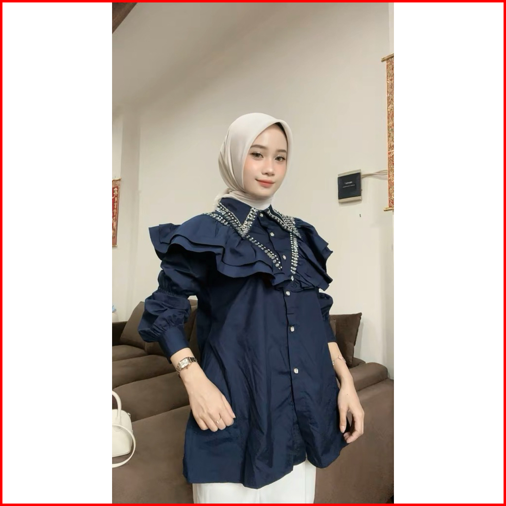 Elora Ruffle Blouse Kemeja Atasan Wanita Payet Kerah Dada All Size Ld 110