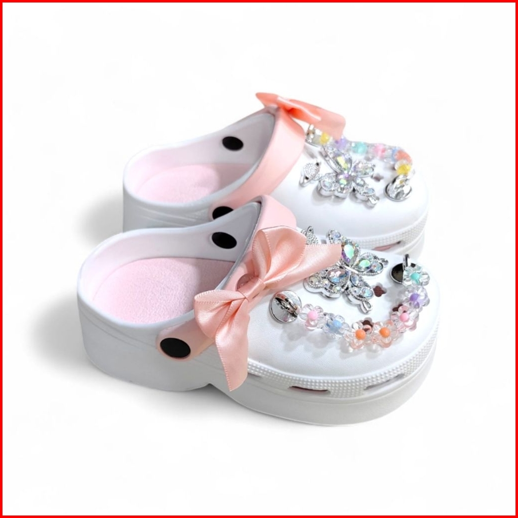 Sandal Sepatu Anak Perempuan Tali Belakang Pita Jibitz Kupu-kupu Casual Fashion Terbaru 2512 Dengan Hiasan Rhinestone