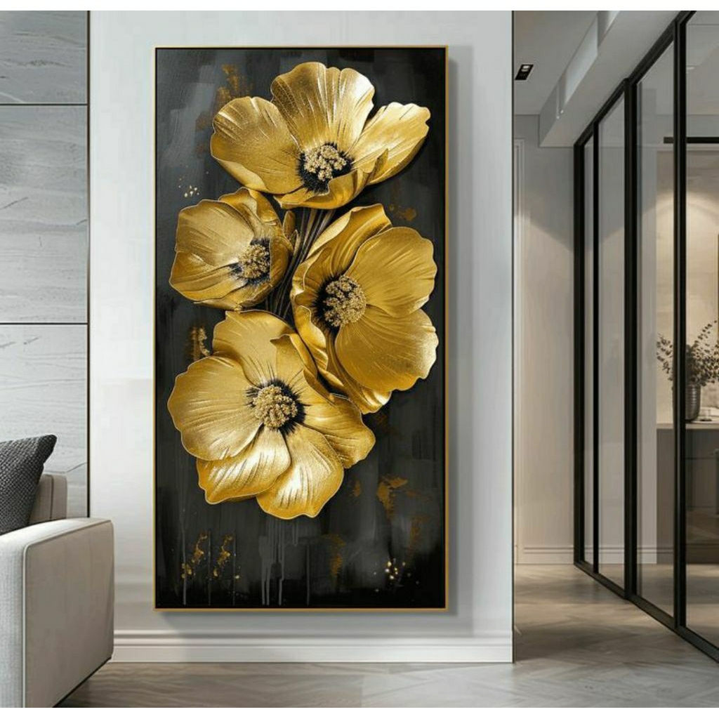 lukisan bunga gold indah cantik minimalis hiasan dinding rumah tekstur tebal timbul modern art