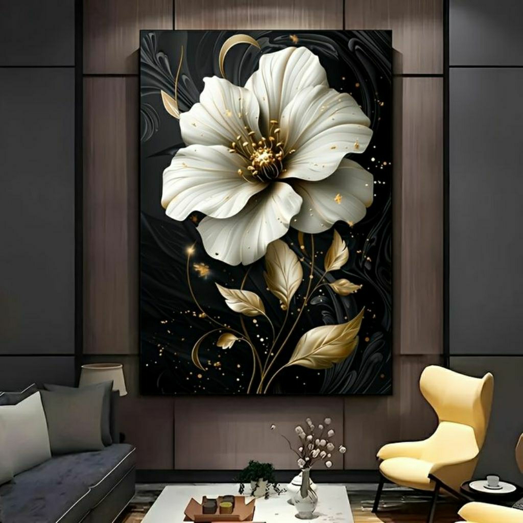 lukisan bunga cantik molek aesthetic hiasan dekorasi dinding rumah ruang tamu tekstur tebal timbul modern art