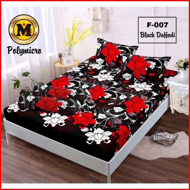 Hw Seprai Microfiber 180x200 Tinggi 25cm Motif Bunga Tulip Hijau Sprei Fitted Lembut Adem Set 4in1 Kasur Queen