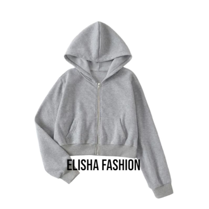 Jaket Sweater Crop Hoodie Wanita Kekinian Plecce