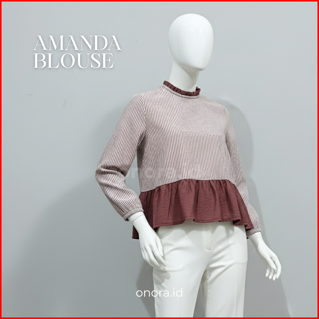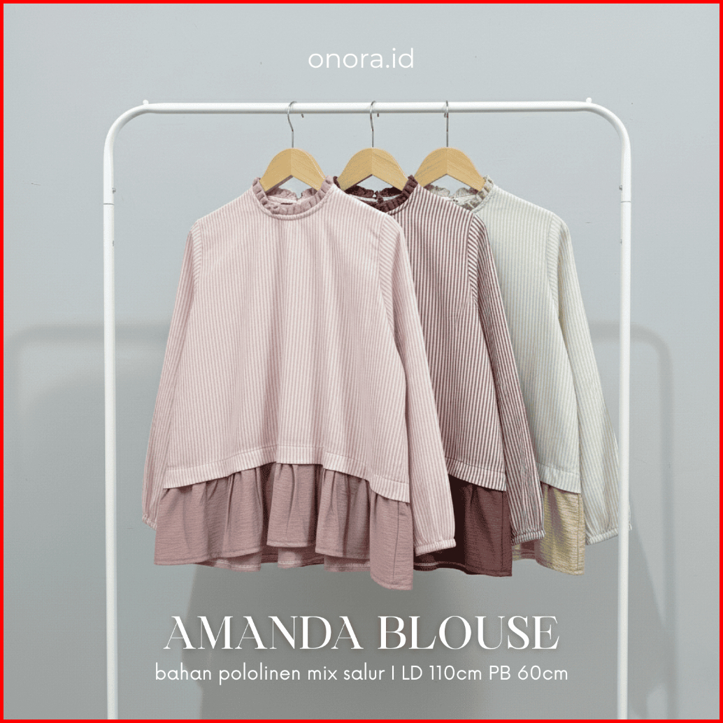 Onora - Amanda Blouse Atasan Wanita Lengan Panjang Two Tone Bahan Poli Katun Mix Pololinen