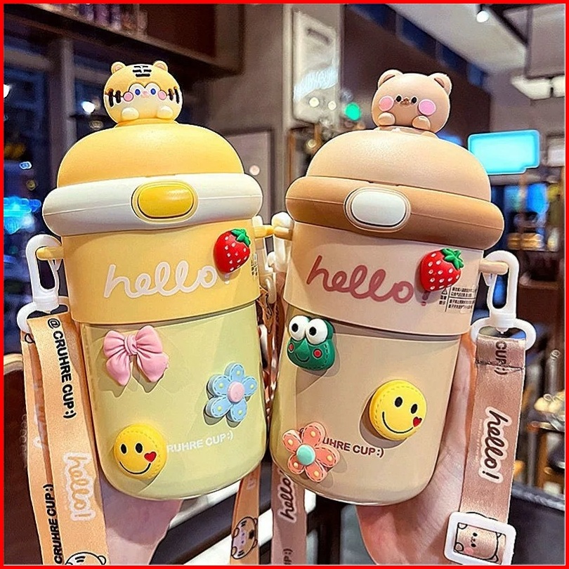 Happy Baby B-03 Botol Minum Kaca Botol Minum Anak Karakter Lucu Tumbler Vacumm Flask Nice 500ml Bpa Free