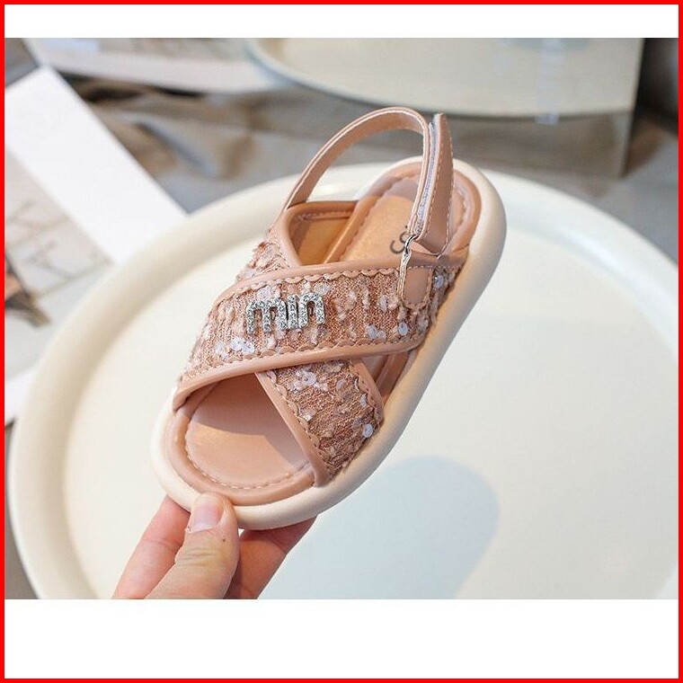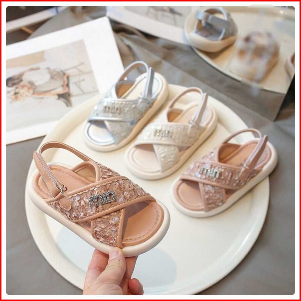 Loli-jkt Sd 1055 Sandal Anak Cewek Flat Tali Silang Perekat Variasi Manik Size 23-35