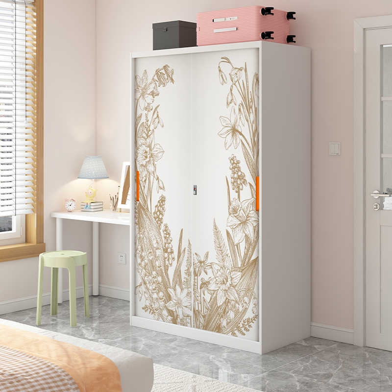 LEMARI BESI SLIDING 2 PINTU LEMARI BESI PAKAIAN LEMARI BAJU MINIMALIS FULL MOTIF & FULL