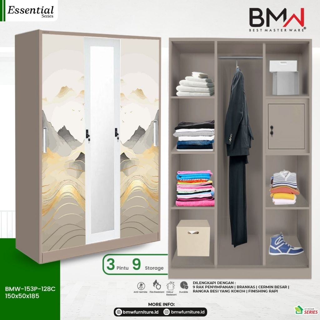 LEMARI PAKAIAN BESI SLIDING BMW 3 PINTU || LEMARI BAJU